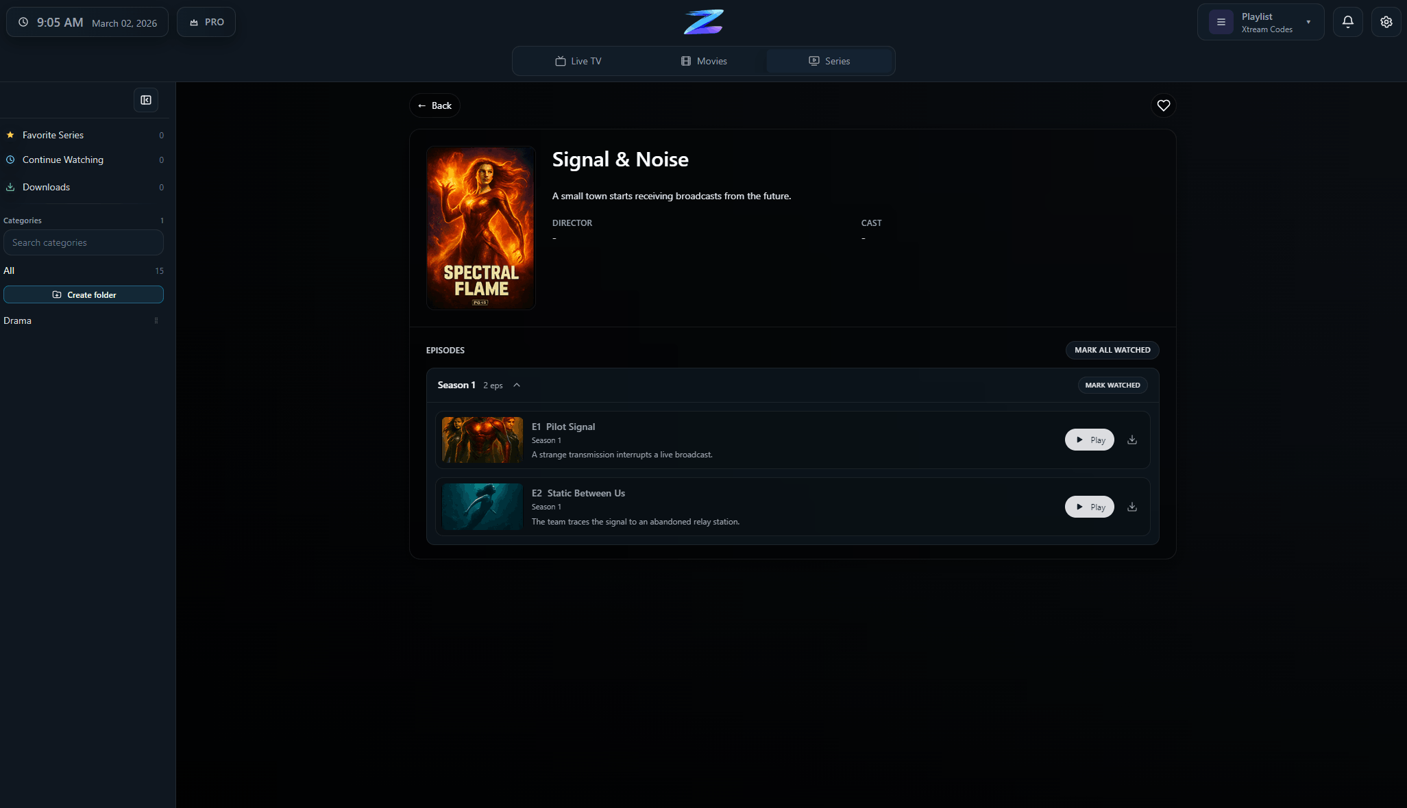 Bring your own playlist and get a clean desktop player for live TV, guide browsing, recordings, downloads, and VOD.